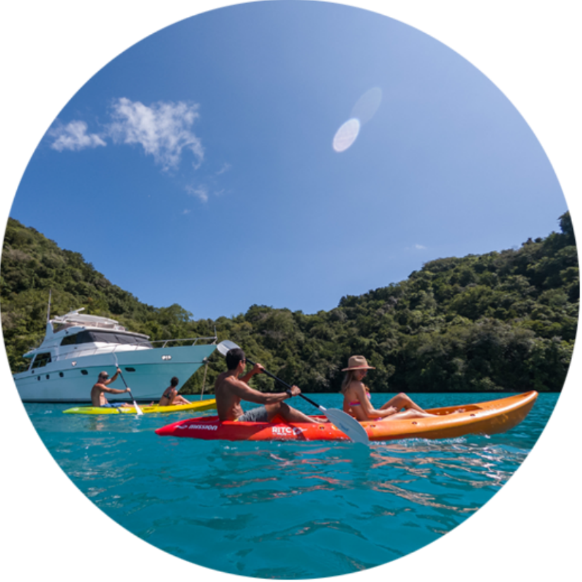 プライベートクルーズと、南国の海ならではの遊びを両方満喫されたい方は、Cコースをお勧めいたします。世界的に注目度の高いSUPを始め、様々なウォーターアクティビティを心ゆくまでご堪能いただけます。